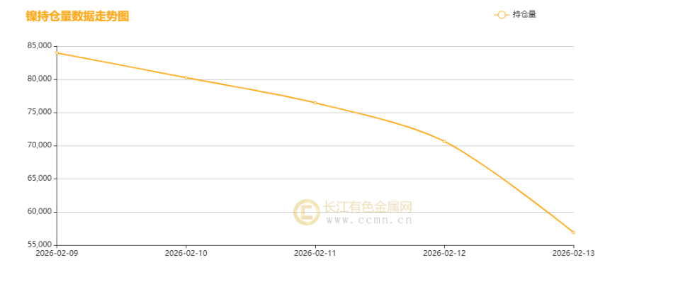本周镍持仓量呈现单边大幅下降态势,自2月9日的83976吨骤减至13日的56904吨,全周累计降幅达32.2%,减仓力度逐日放大,并于春节前最后一个交易日(2月13日)出现单日最大减仓13725吨。这一趋势主要受年末宏观流动性收缩、全球系统性风险共振及镍价剧烈反转共同驱动:春节前资金回笼压力促使市场主动收缩风险敞口,而2月13日美股暴跌引发的流动性挤兑,叠加镍价冲高后单日暴跌止损压力,加速了投机性与程序化交易的集中离场,最终导致持仓量恐慌性下滑。