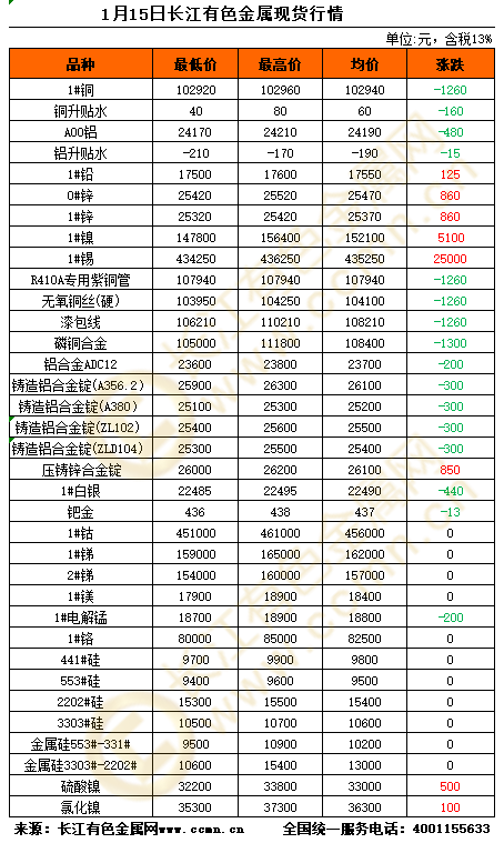 摘要: 1月15日长江有色金属现货行情